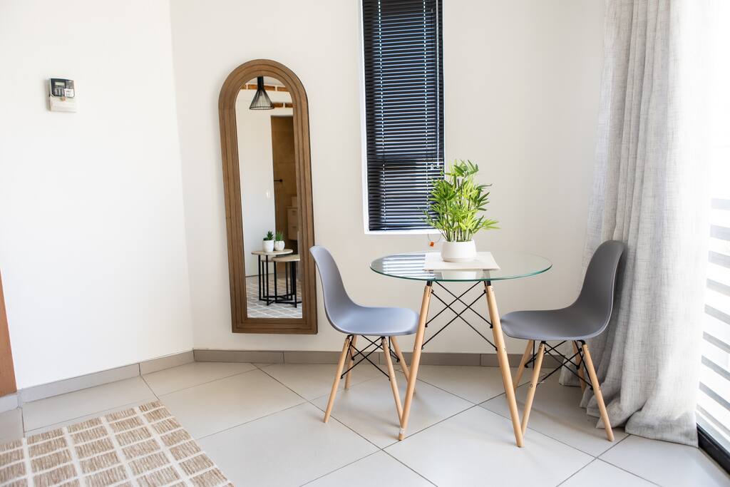 Modern one-bedroom apartment perfectly located opposite Grove Mall and within walking distance of Lady Pohamba Hospital. Enjoy the comfort of a cozy sitting room, a fully equipped kitchenette, and a private bathroom. Stay connected with fast fibre Wi-Fi and unwind with Netflix entertainment. Ideal for business or leisure stays - safe, convenient, and close to shops, restaurants, and key amenities.